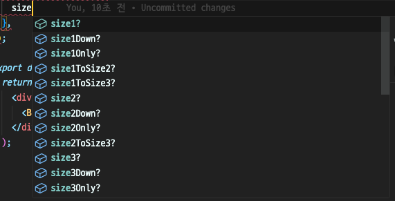 여기 사진을 보면 size1, size2, size3로 만들어진 다양한 breakpoints들이 있습니다. 이런 반응형 처리를 만들어주고 타입 추론까지 해주고... 너무 편리한 거 같습니다.