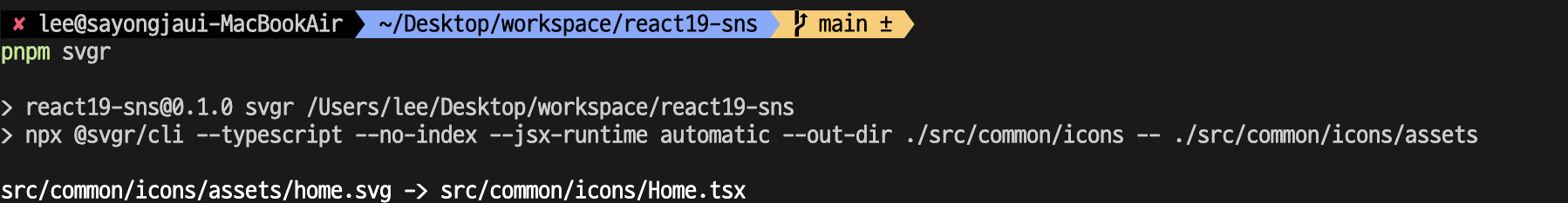 npx @svgr/cli --typescript --no-index --jsx-runtime automatic --out-dir ./src/common/icons -- ./src/common/icons/assets