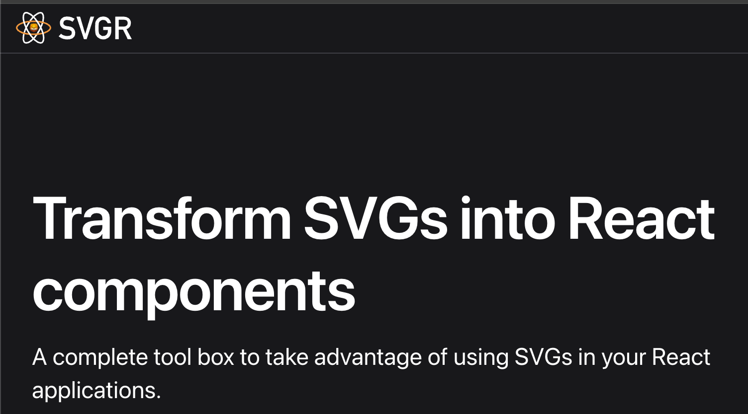 공식문서 첫 화면에서 바로 확인할 수 있는대요. Transform SVGs into React components