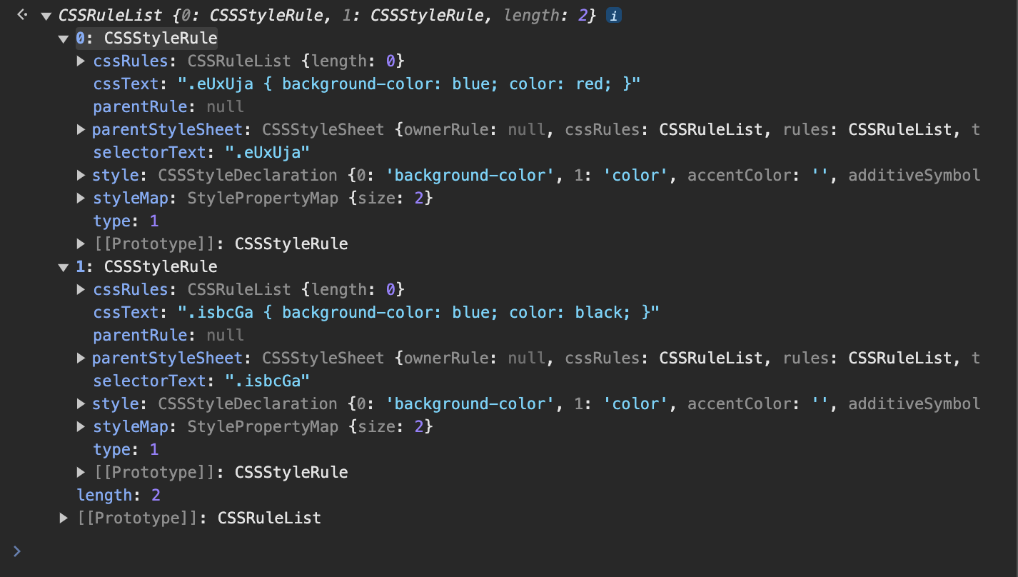이렇게 css({ color: "blue" }); 한번 선언을 해주면 해당 스타일이 생깁니다. 다시 css({ color: "blue" }); 이 코드를 빼어 원래대로 되돌린 다음에 다시 화면을 확인해 보면